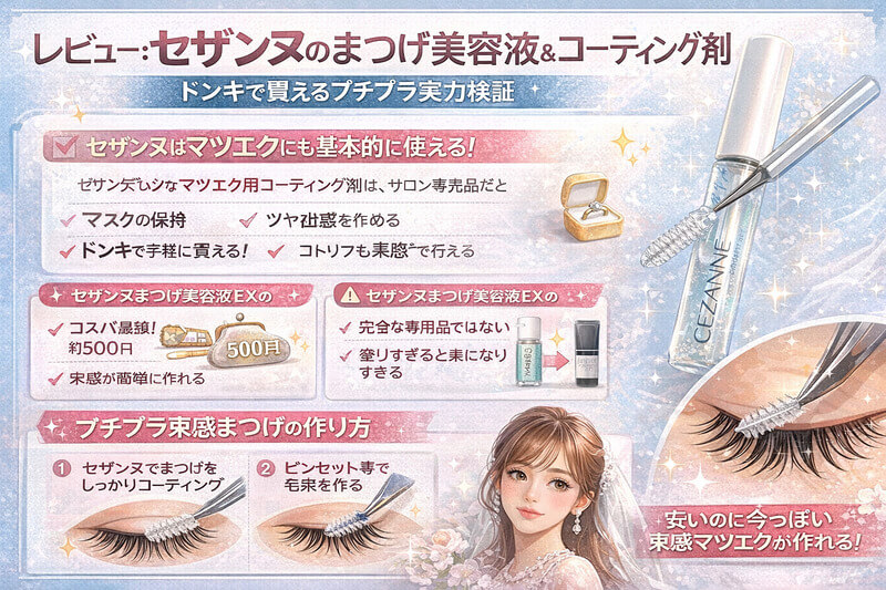 セザンヌのまつげ美容液はマツエクのコーティングに使える?ドンキのプチプラ実力検証