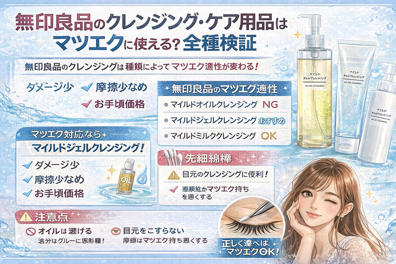 無印良品のクレンジング・ケア用品はマツエクに使える?全種検証|オイル・ジェル・ミルク・綿棒まで解説