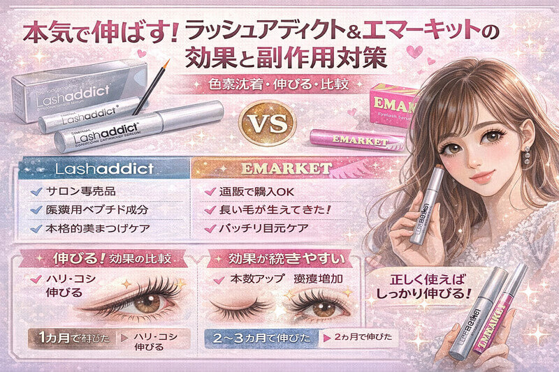 本気で伸ばす!ラッシュアディクト&エマーキットの効果と副作用対策|色素沈着のリスクと比較