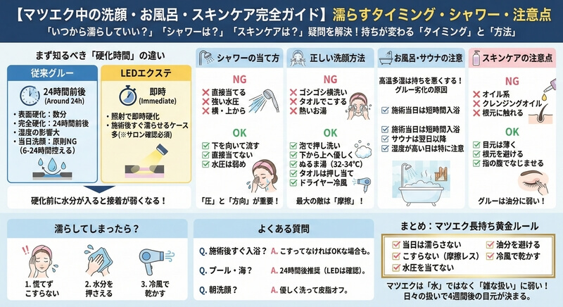 【マツエク中の洗顔・お風呂完全ガイド】濡らすタイミングと長持ちさせるシャワーのコツ