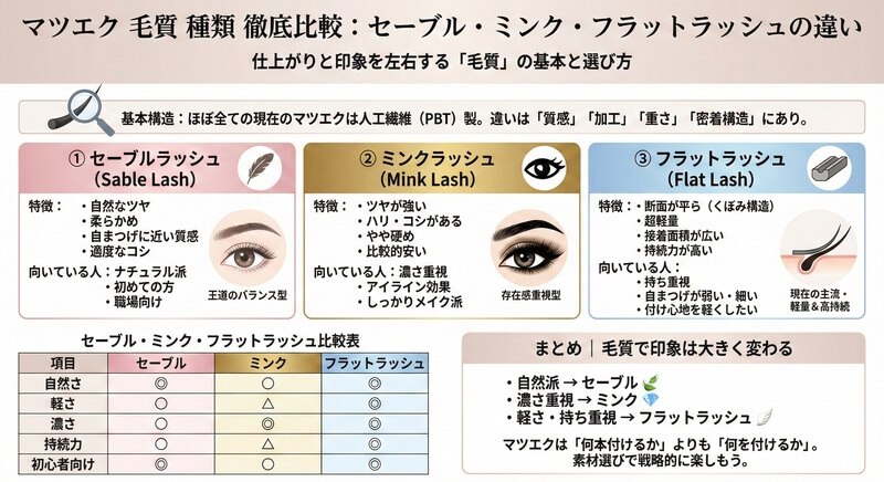 【マツエク毛質・種類完全ガイド】セーブル・ミンク・フラットラッシュの違いと選び方を徹底解説