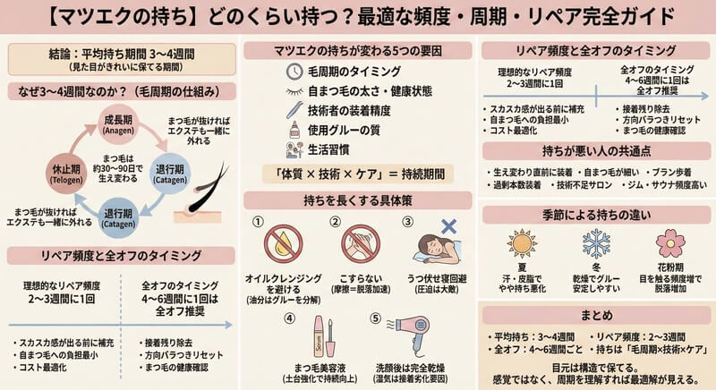 【マツエクの持ち】どのくらい持つ?最適な頻度・周期・リペア完全ガイド!3週間で変わる「美まつげ」の法則