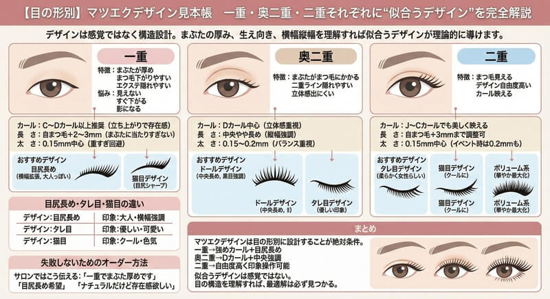 【目の形別】マツエクデザイン見本帳:一重・奥二重・二重に「本当に似合う」最強のオーダーメイド設計