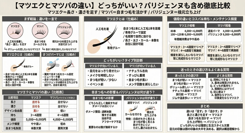 【マツエクとマツパの違い】どっちがいい?パリジェンヌも含め徹底比較!値段・持ち・負担まで完全網羅