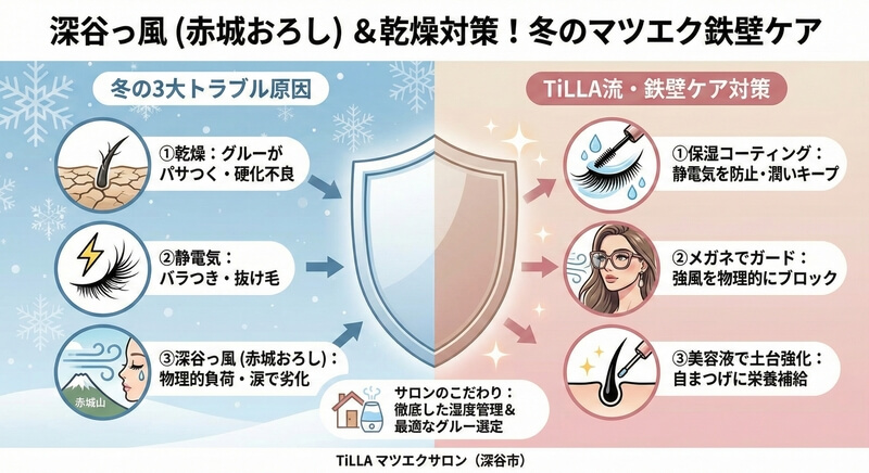 【深谷っ風と乾燥対策】冬にマツエクが取れる・パラつく原因は?地域特有の「風」対策マニュアル
