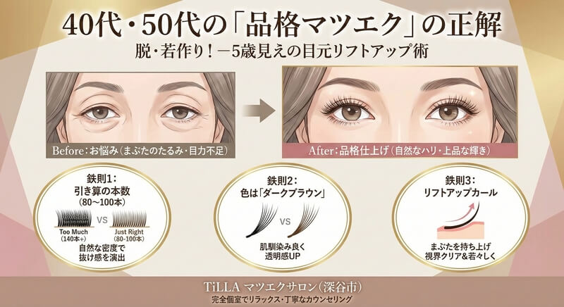 【40代・50代のマツエク】「痛い・若作り」とは言わせない!-5歳の目元を作る「大人の上品デザイン」の正解